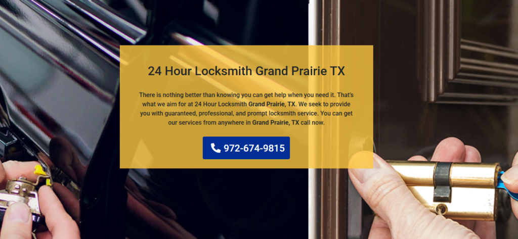 There is nothing better than knowing you can get help when you need it. That’s what we aim for at 24 Hour Locksmith Grand Prairie, TX. We seek to provide you with guaranteed, professional, and prompt locksmith service. You can get our services from anywhere in Grand Prairie, TX call now.